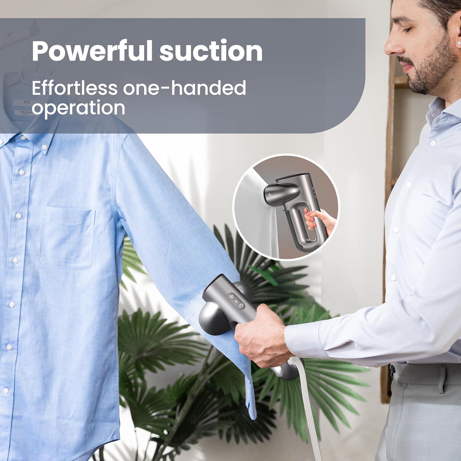 【Instantly Dry and Wearable】Ultra-fine steam prevents water marks, while powerful suction evaporates moisture quickly, leaving no pesky stains behind. Your clothes will be dry and ready to wear instantly.