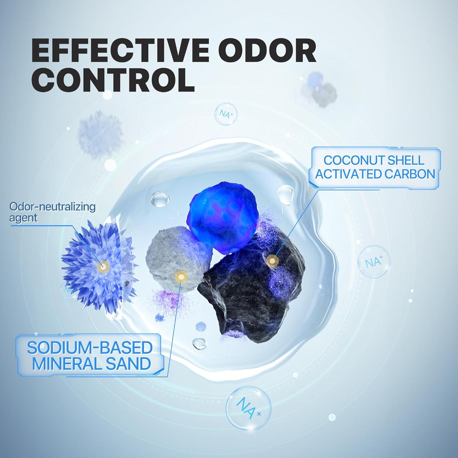14 Days Odor Control: Combining activated coconut shell charcoal, and sodium-based mineral sand: effectively locks in odors, and provides 14 days of long-lasting freshness.